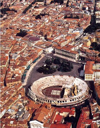 The Arena is the main attraction of Verona and one of the largest amphitheaters ever built by the Romans. The arena was built in the 1st century for gladiatorial combat. The elliptical shape is designed to accommodate a large number of spectators and had good acoustics (the amphitheater accommodated about 30,000 people). The arena was built outside the walls of the Roman city to avoid the crowds in its center. Most of the outer ring of the amphitheater was damaged during the earthquake of 1117, but the inner part is well preserved. Also, the outer ring was destroyed in the 5-6 century to build a second city wall. During the Renaissance, the Arena was dismantled for the construction of new buildings. In the Middle Ages there were numerous benches. Now summer opera seasons are held here.